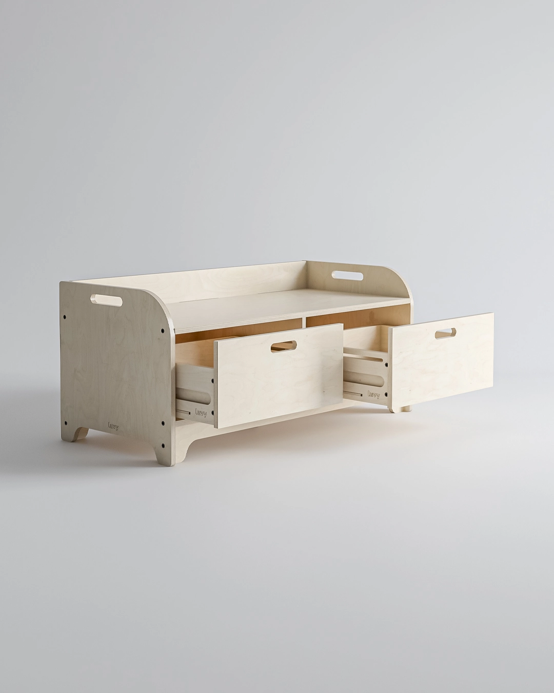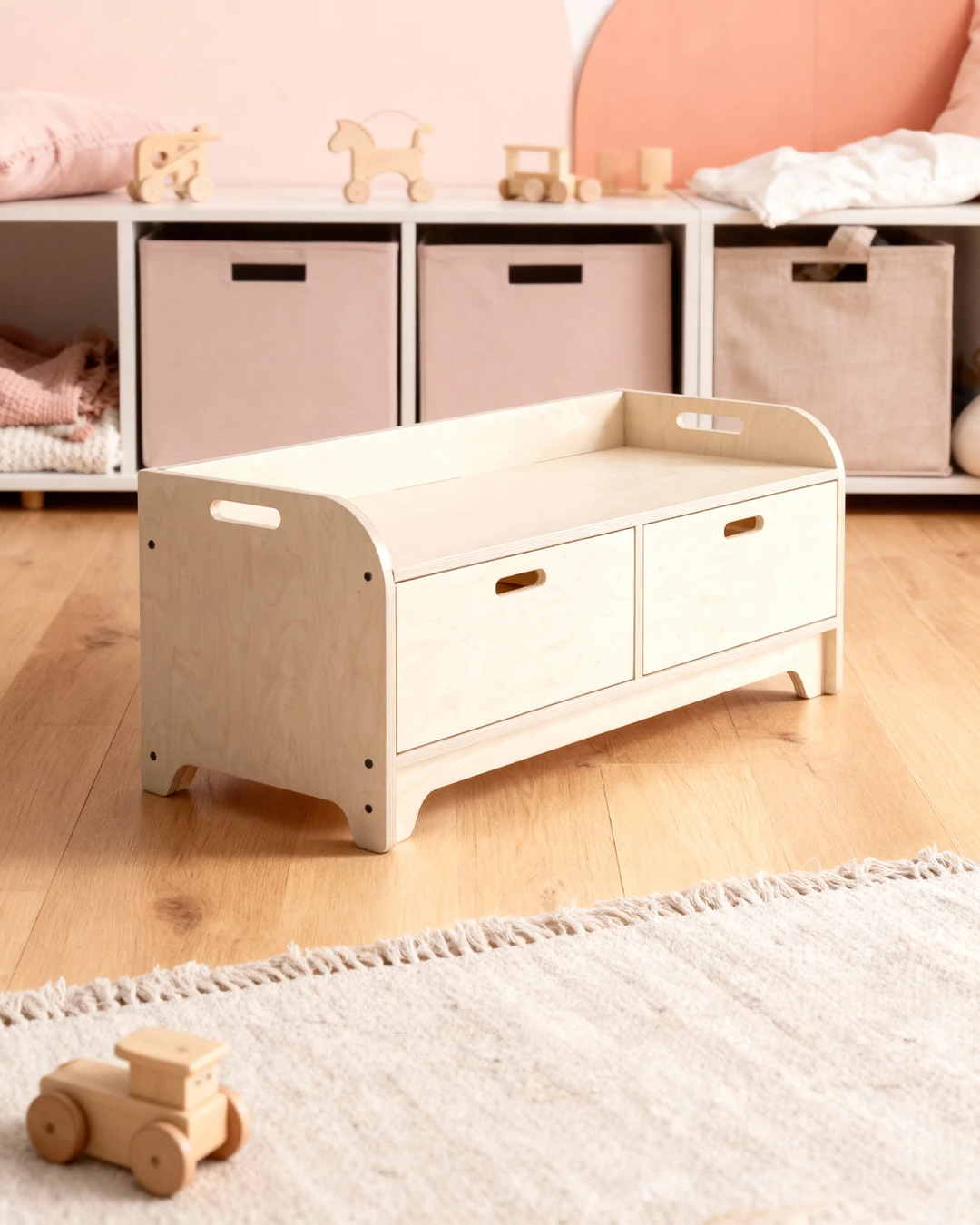Tabii ki güvenlikten ödün vermedik. EN71-3 sertifikalı su bazlı vernikle korunan ve köşeleri özenle yumuşatılan Polya Bank; hem üzerine çıkıp oyun kuracak kadar sağlam, hem de odanın en sevilen köşesi olacak kadar şık.