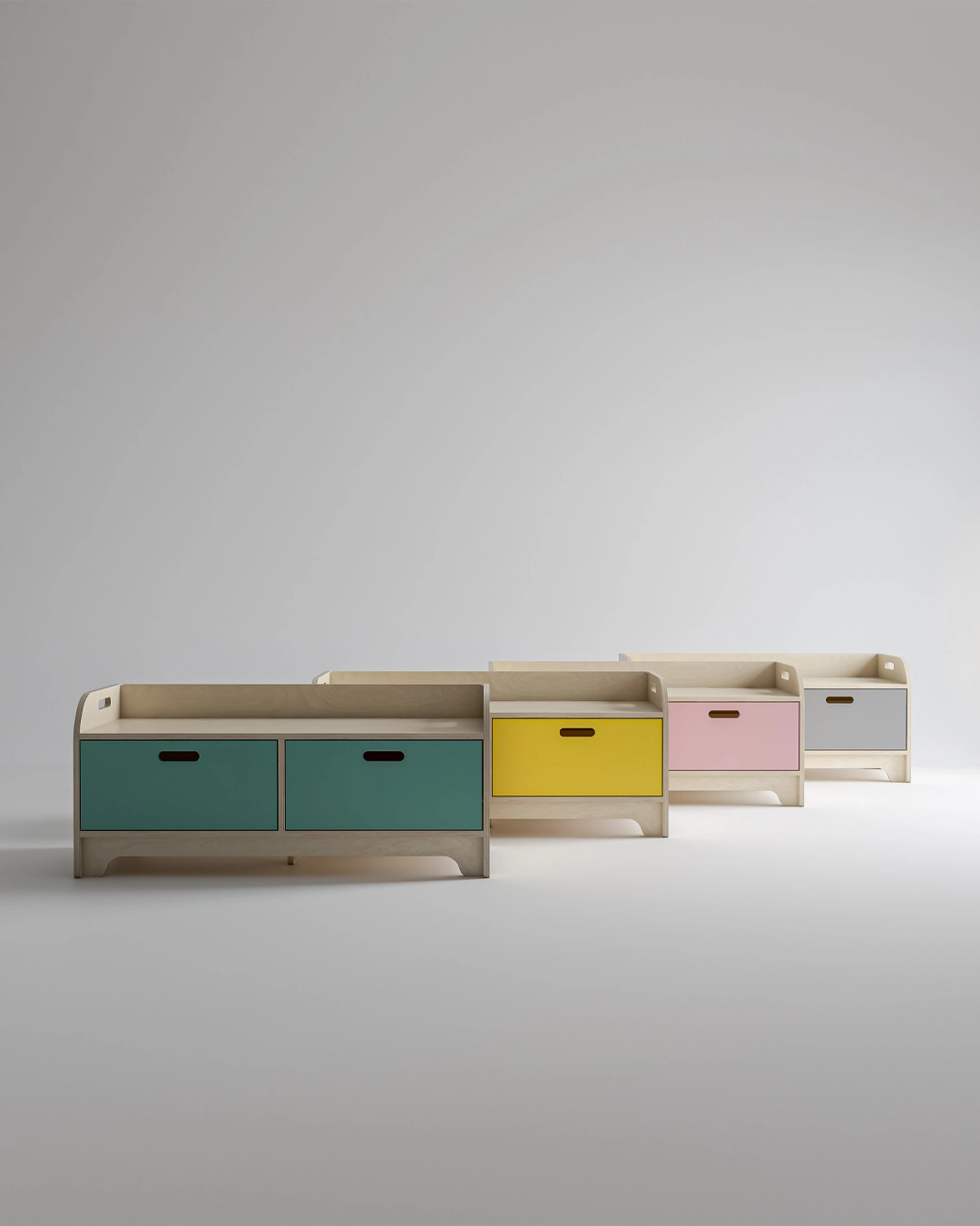 Odadaki dağınıklıkla vedalaşmaya hazır mısınız? Polya Bank, hem miniklerin soluklanacağı tatlı bir dinlenme köşesi hem de o bildiğimiz oyuncak kaosunu saniyeler içinde yutan gizli bir kahraman. Doğal huş ağacının o samimi dokusunu; Sarı, Pembe, Yeşil ve Gri renklerin enerjisiyle buluşturarak her odaya neşe katacak şekilde tasarladık.